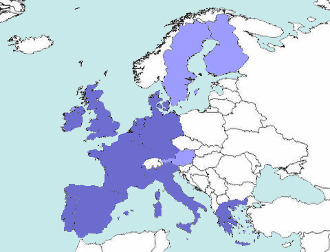 Membership now: Austria Belgium Denmark Finland France Germany Greece Ireland Italy Luxembourg The Netherlands Portugal Spain Sweden United Kingdom