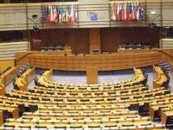 The European Parliament chamber in Brussels - called the Hemicycle.